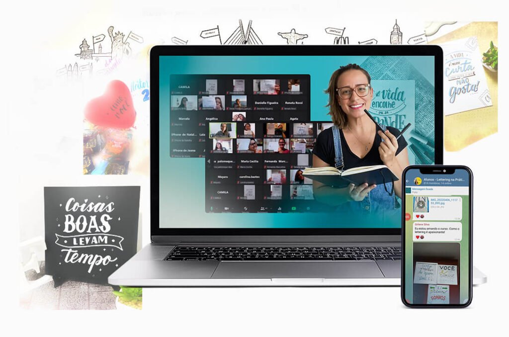 Esse é um treinamento passo a passo, onde você aprende lettering 100% online. São mais de 90 aulas gravadas para você assistir no seu tempo, de onde quiser. Após a inscrição o acesso a plataforma chegará no seu e-mail.